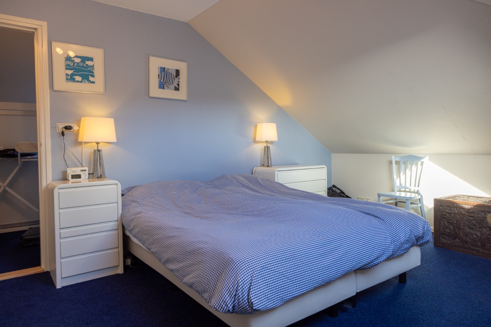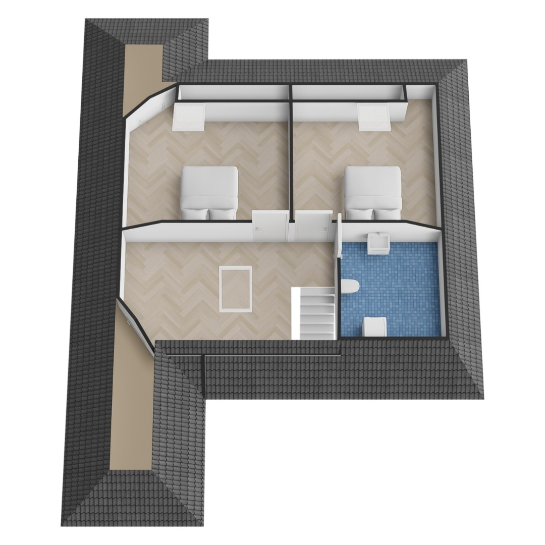 Er zijn maar liefst 6 slaapkamers. De hoofdslaapkamer van bijna 16 m² heeft een eigen badkamer met inloopdouche, wastafelmeubel en wandcloset. Aan de achterzijde een slaapkamer van ca. 14 m² en meer centraal 2 werk- of kinderkamers van beide ca. 5,5 m². De 2e badkamer beneden heeft een inloopdouche en een wastafelmeubel. De toiletruimte is separaat.