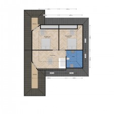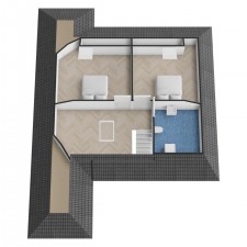 Im Obergeschoss befinden sich ein Flur mit Arbeits- und Abstellmöglichkeiten, ein WC mit wandhängendem WC und Waschbecken sowie 2 Schlafzimmer von jeweils über 15 m², beide mit Dachfenster.